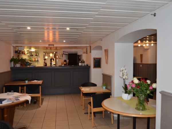 Au rez-de-chaussée : café-restaurant composé d'une salle à boire de 34 places avec bar, d'une salle à manger de 15 places, une terrasse de 40 places, WC hommes / femmes, d'une cuisine professionnelle. Au 1er étage, 1 appartement 4 pces composée d'un séjour, de 3 chambres, un salon avec balcon, un coin bureau, une salle de bain avec douche, WC, lavabo, une salle d’eau avec wc, douche, lavabo. Au 2ème étage, 4 chambres, deux salles d’eau avec wc et douches. Au combles, un grand volume disponible. Au sous-sol : 1 grande cave accessible de l’intérieur et de l’extérieur, une cave à vin, local technique avec installation centrale à mazout, citerne de 2000 lt, petit ascenseur à la cuisine pour marchandises, garage pour deux véhicules.